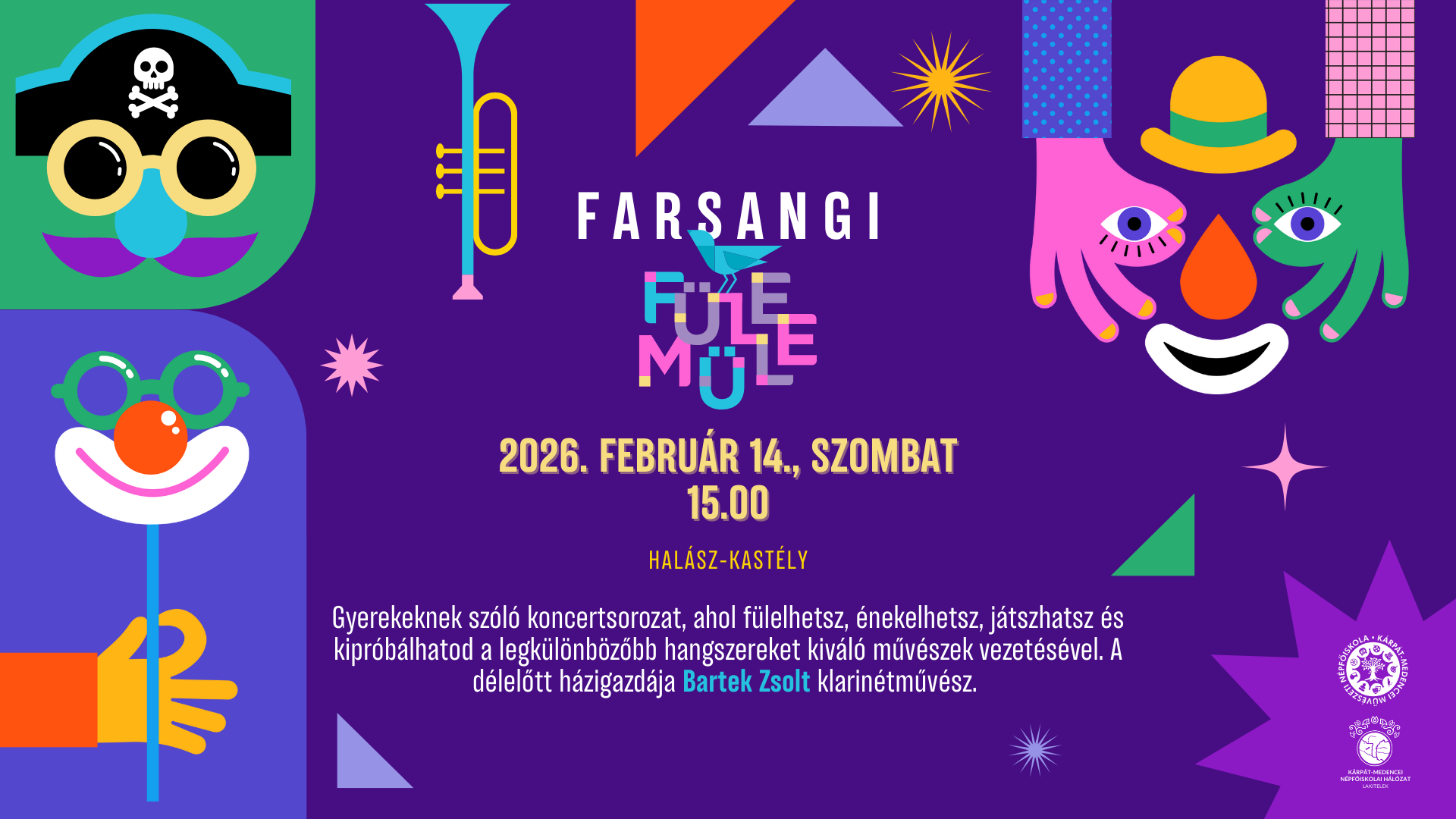 Gyerekeknek szóló koncertsorozat: fülelj, énekelj, játssz, próbáld ki a legkülönbözőbb hangszereket remek művészek iránymutatásával és társaságában. A délelőtt házigazdája Bartek Zsolt klarinétművész.
